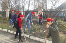 26 октября 2019 года отряд Юнармейцев нашей школы принял участие в субботнике по уборке школьной и пришкольной территории. Они приводили в порядок газоны и клумбы, подметали дорожки, убирали мусор. В красных беретах, они показывали пример другим ребятам, помогали им, носили мусор, выполняли тяжёлую работу. Все работали дружно – субботник ведь не просто уборка, но отношение – к своему посёлку и своей школе. Было приятно видеть радостные лица ребят, настроение было у всех отличное.