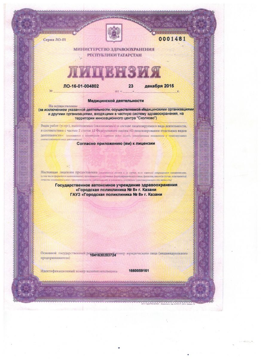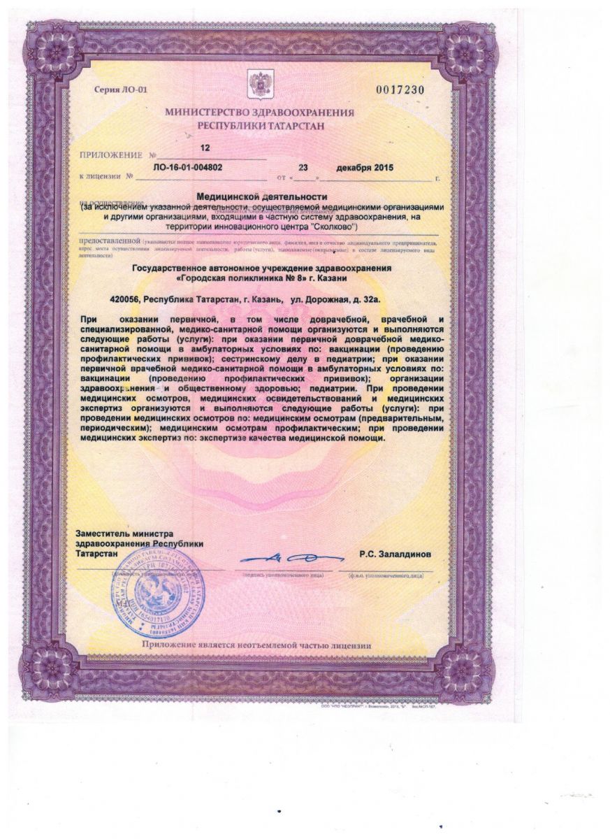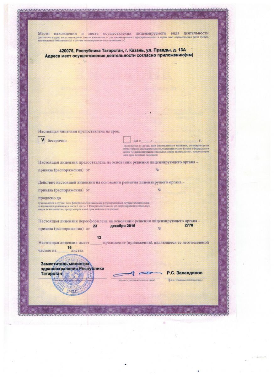 Лицензия на осуществление медицинской деятельности (оборотная сторона)