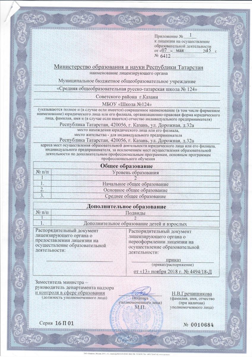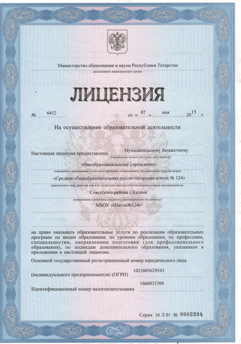 МБОУ «Средняя общеобразовательная русско-татарская школа №124» Советского района г. Казани/ Казан шәһәре Совет районының “124нче рус-татар урта гомуми белем мәктәбе” гомуми белем муниципаль бюджет учреждениесе