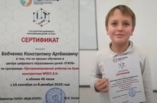 Бобченко Костю с окончанием курсов по робототехнике и получилением сертификата .