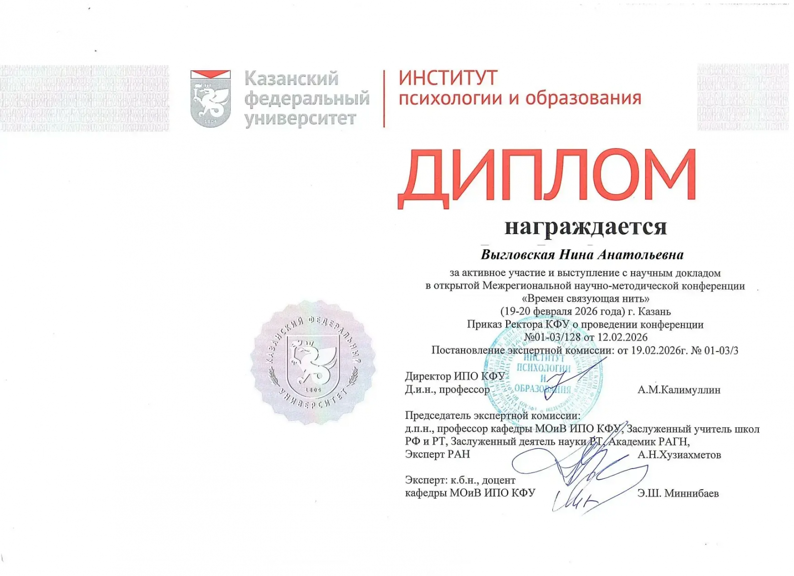 Поздравляем заведующего библиотекой ✨Выгловскую Нину Анатольевну с заслуженной наградой! За активное участие и выступление с докладом на открытой Межрегиональной научно‑практической конференции «Времен связующая нить» удостоена диплома. Гордимся профессиональными достижениями и вкладом в развитие образования, желаем новых успехов и достижений.