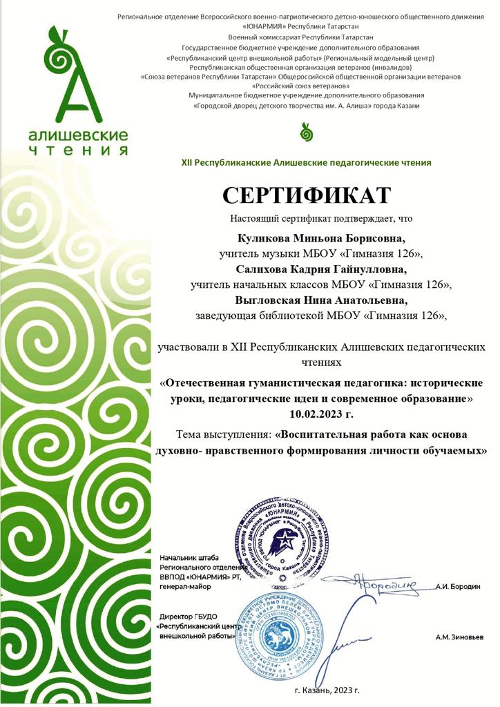 Поздравляем Выгловскую Нину Анатольевну, Куликову Миньону Борисовну, Салихову Кадрию Гайнулловну - они участники XII Республиканских Алишевских педагогических чтений «Отечественная гуманистическая педагогика: исторические уроки, педагогические идеи и современное образование», посвящённых 200-летию со дня рождения К.Д. Ушинского. Благодарим за подготовку и участие и желаем дальнейших успехов.