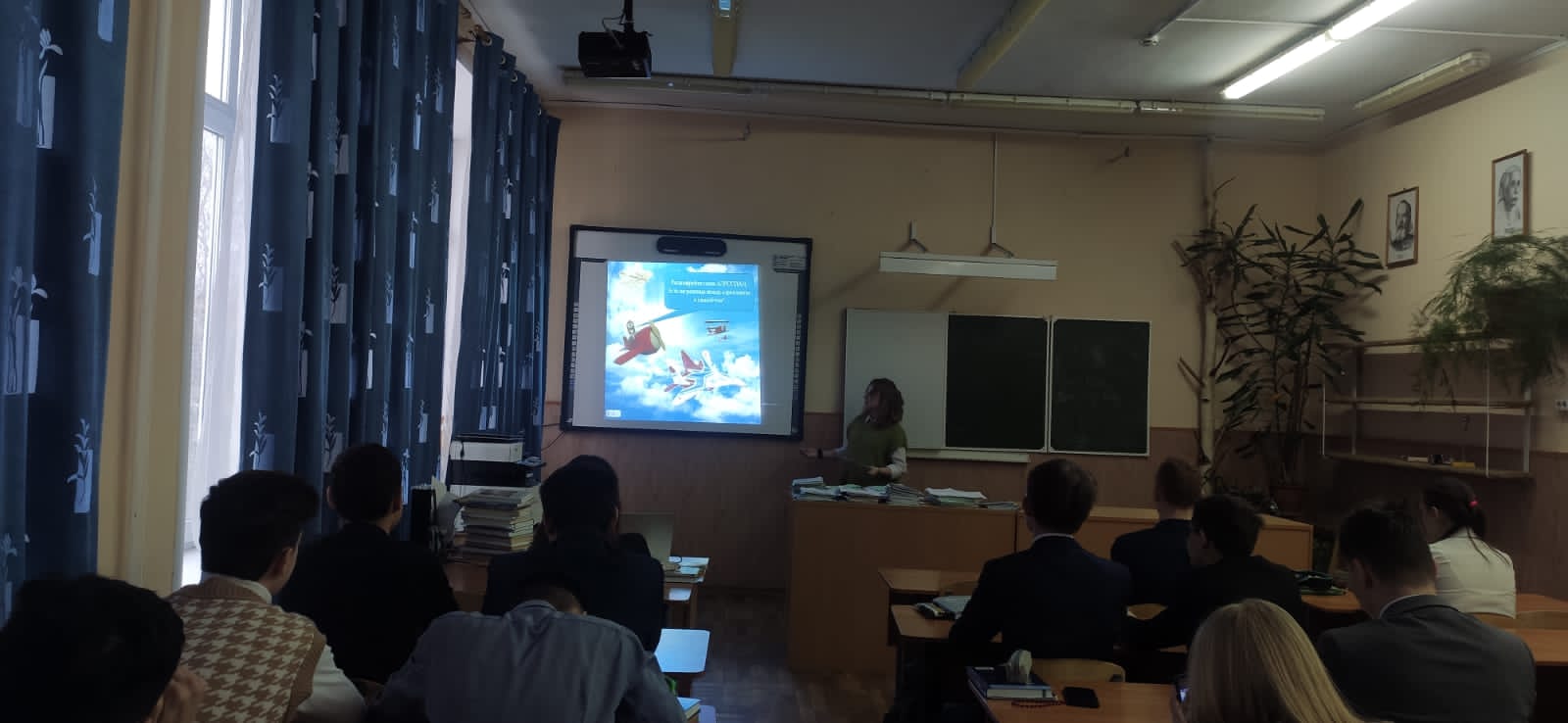 Сегодня учитель физики, математики и астономии Арасланова Гульшат Римовна с учащимися 11А класса провела внеурочное мероприятие, посвященное 100-летию гражданской авиации России.