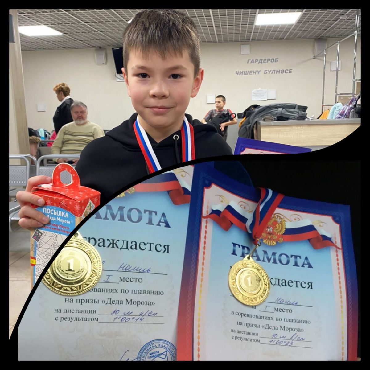 Поздравляем ученика 3 А класса Юнусова Наиля. Он занимается в школе плаванья, занял два первых места в соревнованиях по плаванию на призы «Деда Мороза». Желаем дальнейших успехов и побед.