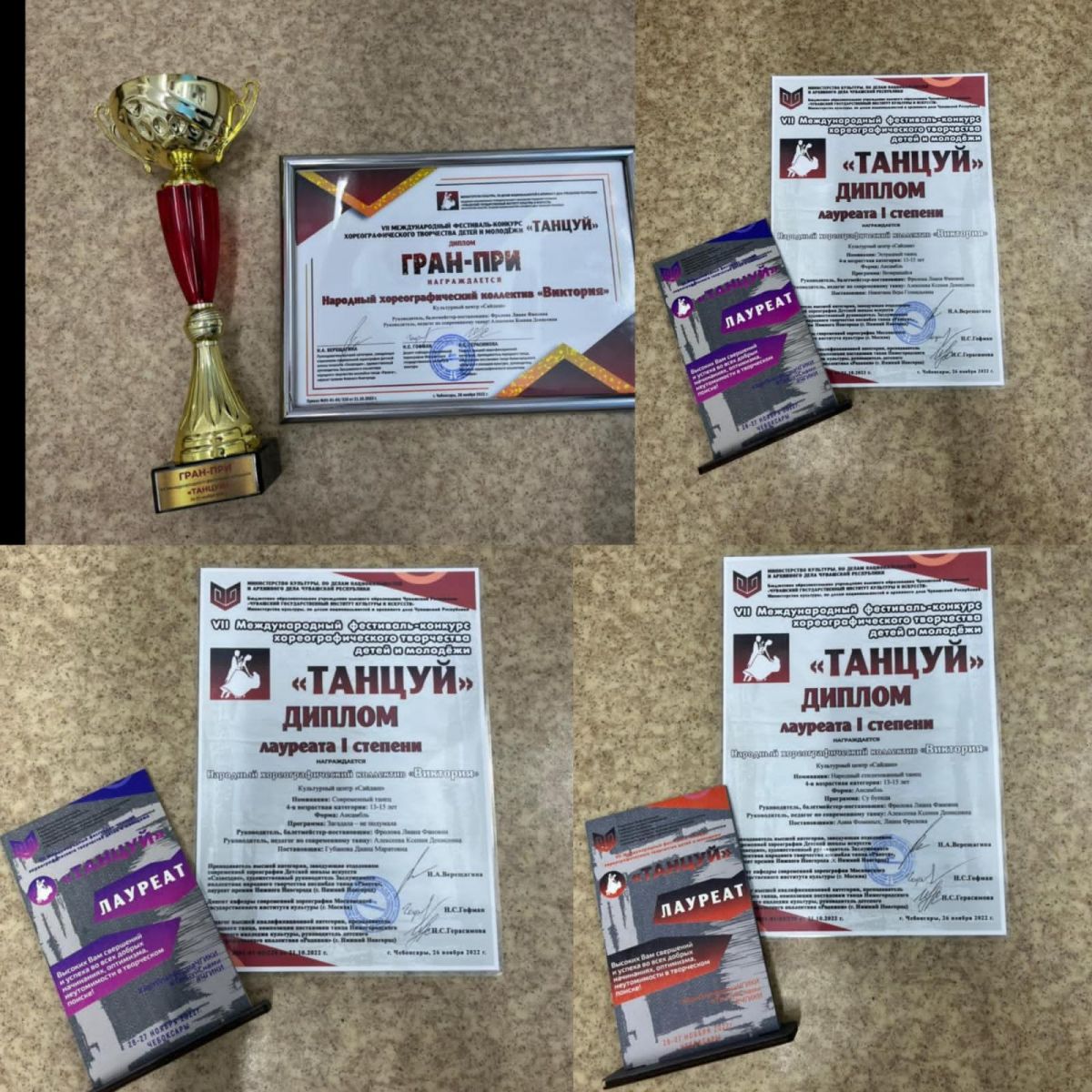 Поздравляем с победой Народный хореографический коллектив "Виктория" и наших обучащихся: ученицу 4 А класса - Вандюкову Марию, ученицу 8А класса - Копаневу Арину, ученицу 10 А класса - Шамееву Рузану. Гран-при и лауреаты I степени. Они участники VII Международного фестиваля-конкурса хореографического творчества детей и молодежи "ТАНЦУЙ", который проходил в г. Чебоксары. Благодарим за подготовку руководителей: Фролову Лиану Фановну, Алексееву Ксению Денисовну, Никитину Веру Геннадьевну. Желаем дальнейших успехов и творческих побед.