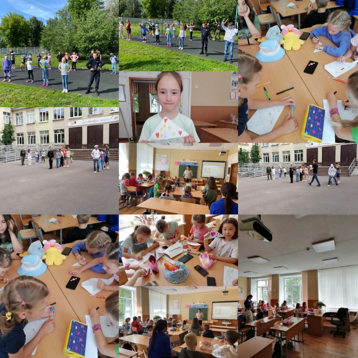 Работа лагеря продолжается-с утра зарядка и линейка с перекличкой отрядов. Затем завтрак. Сегодня дети в лагере готовились к мероприятию, посвящённому дню памяти и скорби. Была проведена беседа и организована творческая работа. Дети делали знаменитые треугольники-фронтовые открытки. Сейчас мы практически не пишем писем. Поэтому бумажные послания утратили свою ценность. А в годы войны , когда наши деды и прадеды защищали нашу Родину от фашистов, это была единственная связь с домом. Самое ценное на войне было знать, что с родными и близкими всё в порядке, что они живы и здоровы. Письма не запечатывали в конверты, а складывали в форме треугольника. Сегодня сохранились тысячи таких переписок. Потом провели спортивные игры. Их сменила музыкальная викторина. По традиции день завершился прогулкой и подвижными играми на свежем воздухе.