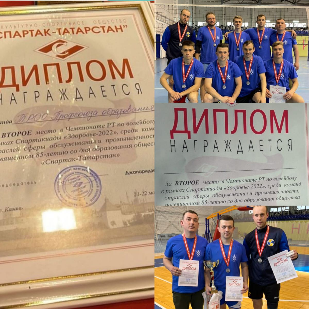 Сегодня состоялся Чемпионат РТ по воллейболу в рамках Спартакиады "Здоровье - 2022" среди команд отраслей сферы обслуживания и промышленности, посвящённый 85-летию со дня образования общества " Спартак- Татарстан". Волейбол — очень азартная игра, она крепко объединяет игроков одной команды. Здесь надо бороться за команду, переживать за удачу всех. А победа приносит массу удовольствия, которое можно разделить со своей командой. Учителя не только учат, но и играют! Учителя Казани представляли Татарстанскую Республиканскую Организацию Общероссийского Профсоюза Образования. Поздравляем волейбольную команду учителей г. Казани с победой, II место!