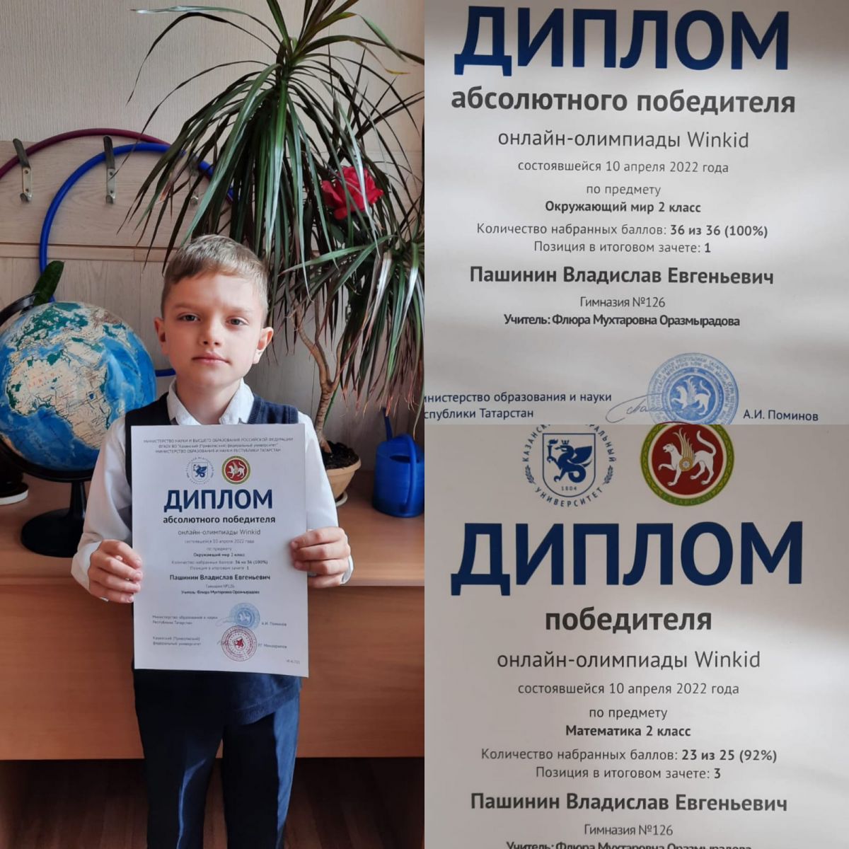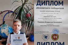 Поздравляем ученика 2 Б класса, Пашинина Владислава с победой в онлайн-олимпиаде по окружающему миру, Диплом I место и по математике Диплом III место.