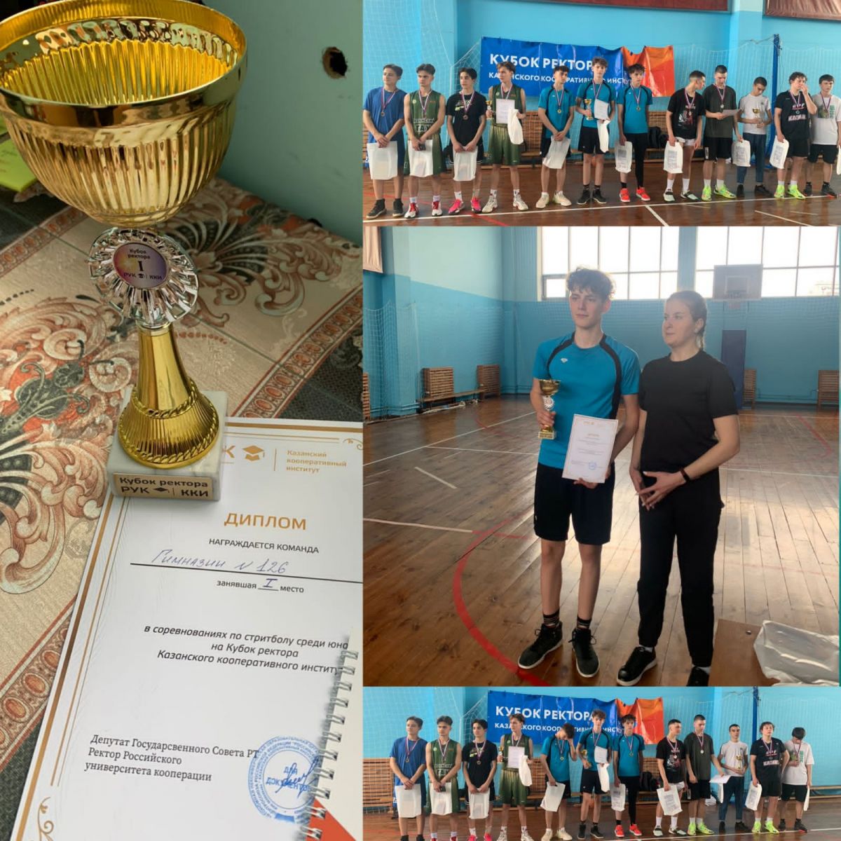 Сегодня наша школьная юношеская баскетбольная команда приняла участие в соревнованиях по стритболу среди юношей на Кубок ректора Казанского кооперативного института.
