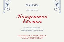 Поздравляем ученицу 11А класса, Капустину Евгению!