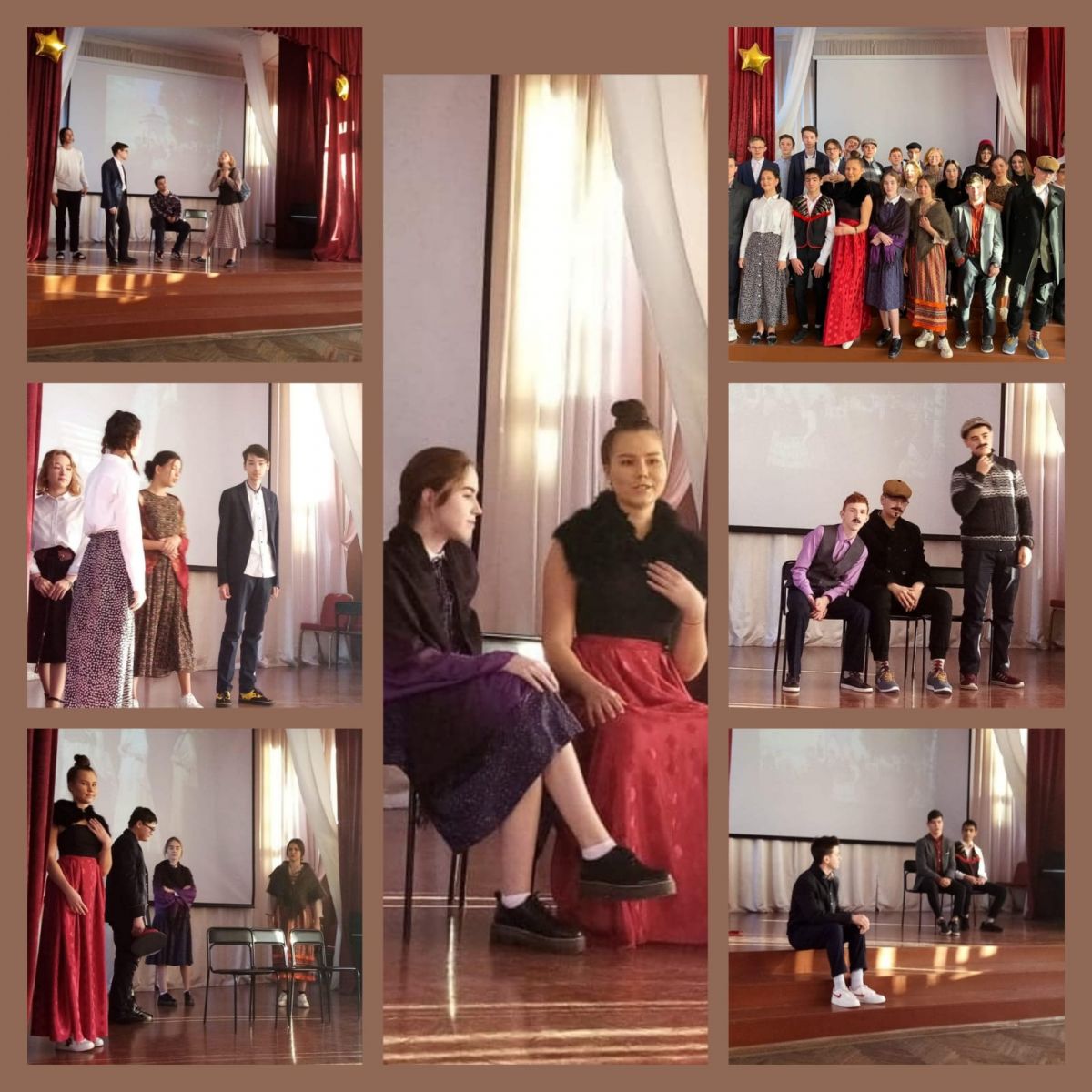 Сегодня в 10 А классе настоящий праздник - День творческих проектов. На уроке литературы (учитель Горбунова О. С.), на сцене, ребята разыграли отрывки из пьесы А. Н. Островского "Гроза ".|
