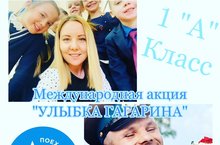 1 А класс вместе с классным руководителем Курмаевой А. Р. сегодня тоже присоединились к международной акции «Улыбка Гагарина»