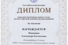 Наши первые!!!В период с 20 по 23 января проходил региональный этап Всероссийской олимпиады школьников по экологии. Рады сообщить, что наши ученицы вернулись оттуда не с пустыми руками: Саша Наживина стала победителем, а Аня Камашева — призером этого этапа. Поздравляем наших девочек! Так держать!!! Молодцы!!! -