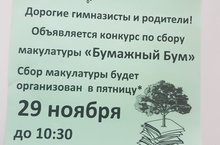 29 сентября в МБОУ "Гимназии №126" прошел БУМ! Да не просто БУМ, а "Бумажный бум"! Был объявлен конкурс на самое большое количество собранной макулатуры. Ребята активно включились в поиски ненужной бумаги у себя дома, у соседей, родственников (некоторые даже в магазинах спрашивали!).Победители "Бумажного бума" - а это были учащиеся 8б класса - были награждены походом в цирк.