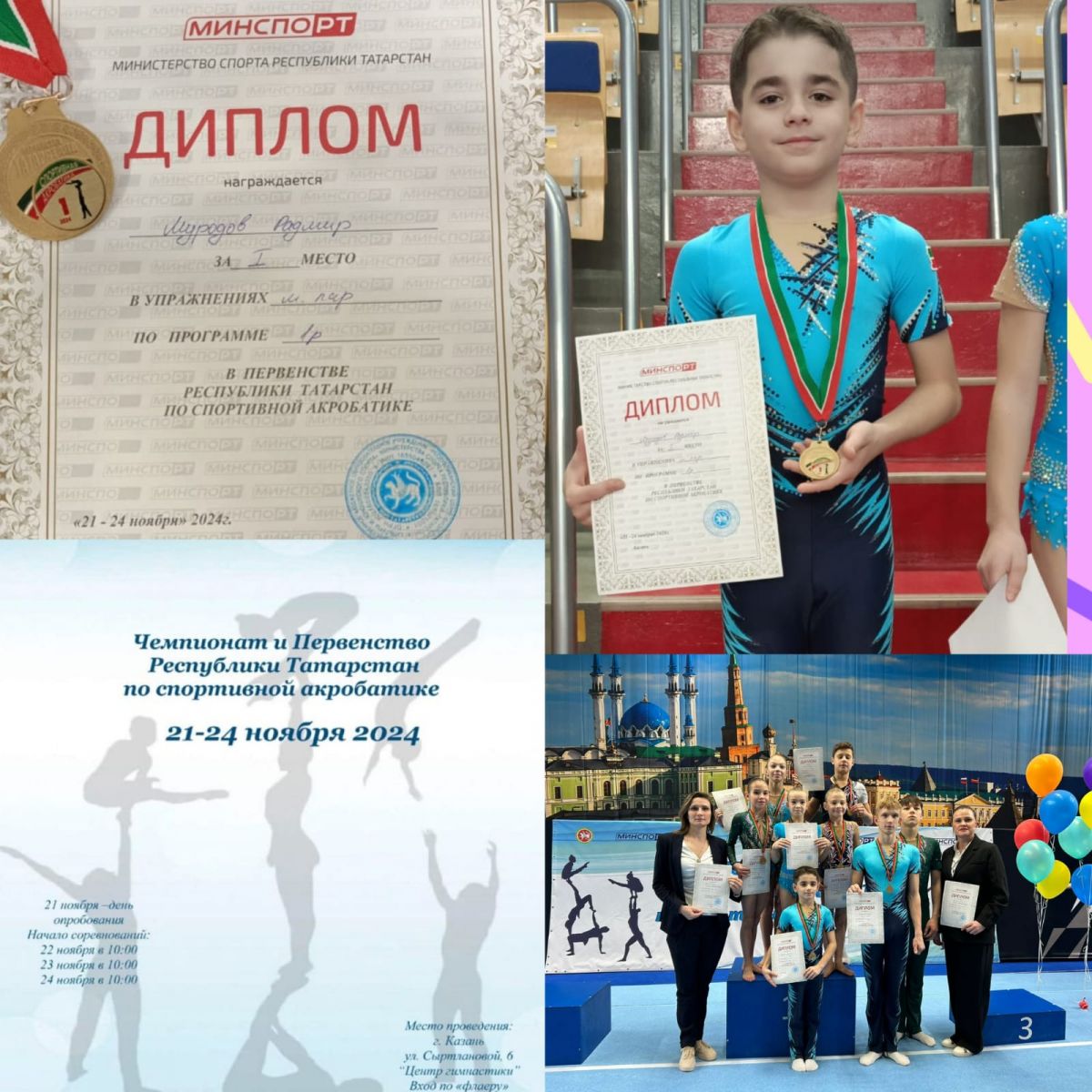 I место в первенстве по спортивной акробатике.
