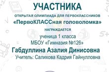 Диплом участника открытой олимпиады для первоклассников