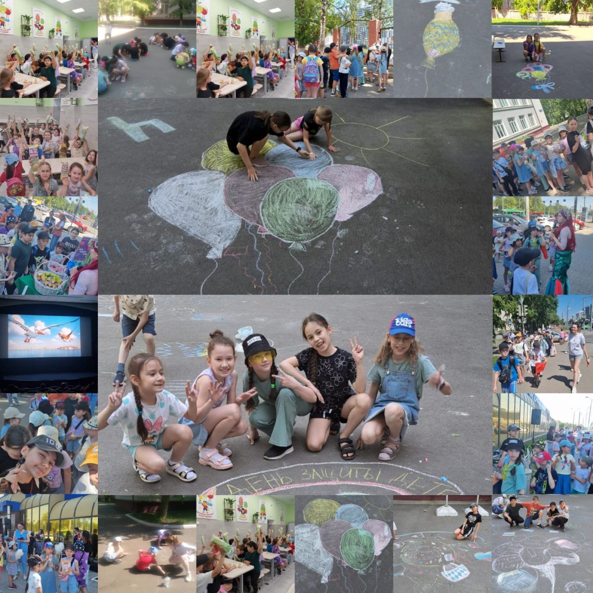 1 июня — детский праздник, праздник мира, добра и улыбок. И в лагере "Солнышко" кипит работа... С утра линейка и зарядка. Праздничное настроение пришло и с календарным летом. Пожалуй, одно из самых любимых развлечений – рисование цветными мелками на асфальте. Дети в рисунках с большим удовольствием воплощают свои мечты. И уже через тридцать минут школьный двор словно накрылся красочным лоскутным одеялом. Затем все активно включились в танцевальный батл. После обеда дружно отправились в кинотеатр "Мир". По дороге попали на праздник, который устроила торговая сеть "Бахетле" и все тут же включились в интерактив,позабыв куда шли. В кинотеатре "Мир" дети смотрели мультфильм "Чудо в перьях 2". Мультфильм очень добрый, веселый, поучительный с хорошим посылом о настоящей и верной дружбе, поддержке в трудную минуту, любящей семье. Ну и традиционно каждый получил мороженку. День закончился играми на свежем отдыхе. Праздник удался!