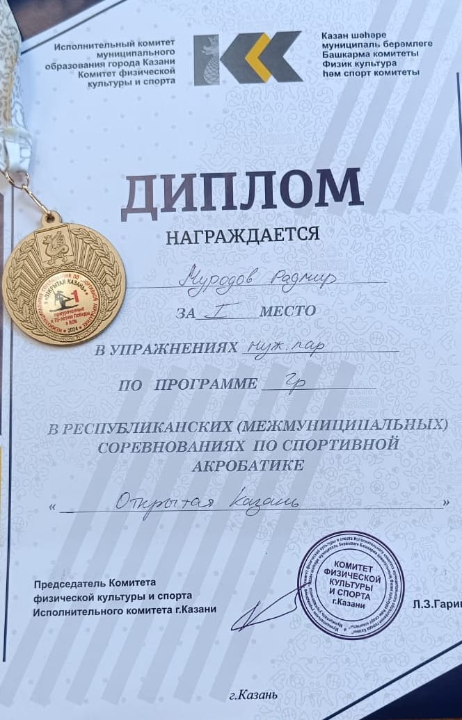 Поздравляем ученика 3Б класса, Муродова Радмира. I место в республиканских соревнованиях по спортивной акробатике. Желаем дальнейших успехов и спортивных побед.