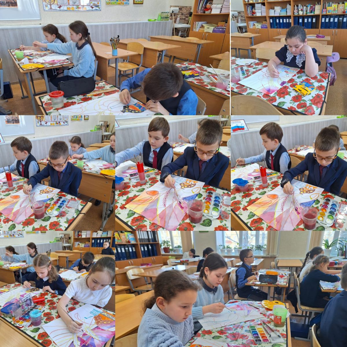 Витраж – это уникальный вид искусства, имеющий множество разновидностей. Это изысканный вид искусства, использующий свет для увеличения своей красоты. Историки не могут назвать точный период возникновения витражей. Следы создания картин из цветного стекла были найдены в древних культурах, таких, как Рим, Византия, Китай и повсеместно в средние века. В Европе, первое известное использование этого искусства, было зафиксировано при строительстве церквей в 10 веке. А обучающиеся 3 А класса, тем временем, продолжили второе занятия в аrt-студии, используя технику рисования цветными мелками. Будем с нетерпением ждать готовых работ...