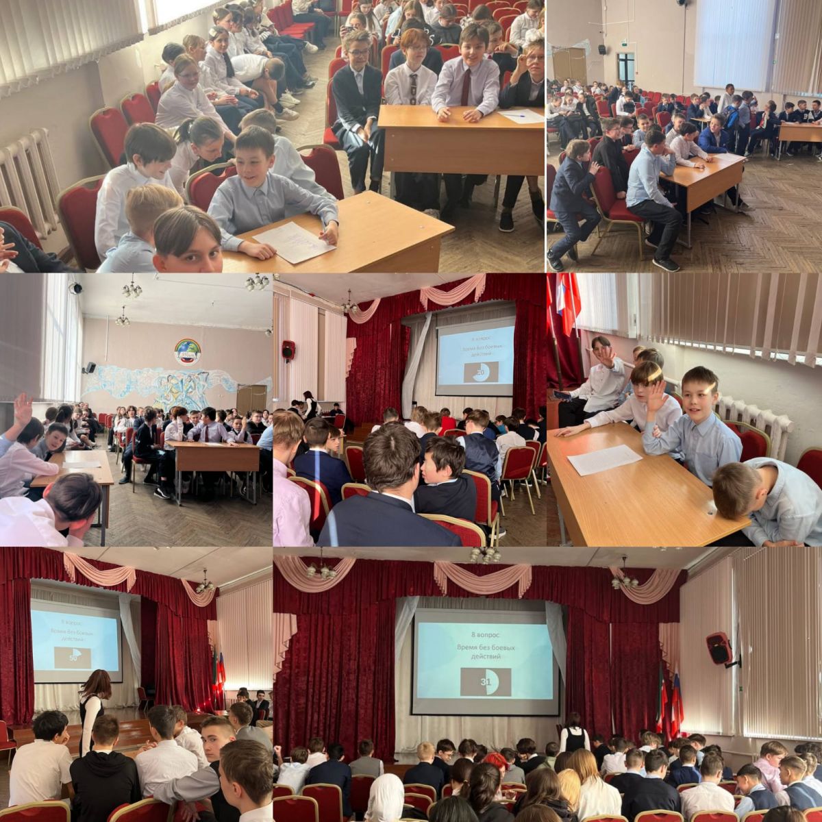 Праздник 23 февраля в школе – хороший повод для воспитания у учащихся чувства патриотизма, сопричастности к лучшим традициям своей Родины, формирования у детей гордости за славных защитников Отечества. Это праздник всех людей, которые стоят на страже нашей Родины. Это праздник настоящих мужчин — смелых и отважных, ловких и надёжных, а также праздник мальчиков и юношей , которые вырастут и станут защитниками Отечества. Сегодня для учащихся 5 - 6 , 7- 8 классов провели квиз, посвящённый Дню защитника Отечества. Организаторы мероприятия советник директора по воспитательной работе Ахмадиев Азат Фаридович, актив совета старшеклассников: Ганеева Камила, Хабибуллин Самир, Хафизов Эмиль, Невмержицкая Ульяна, Попова Вероника. Квиз прошёл познавательно и увлекательно.