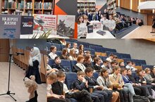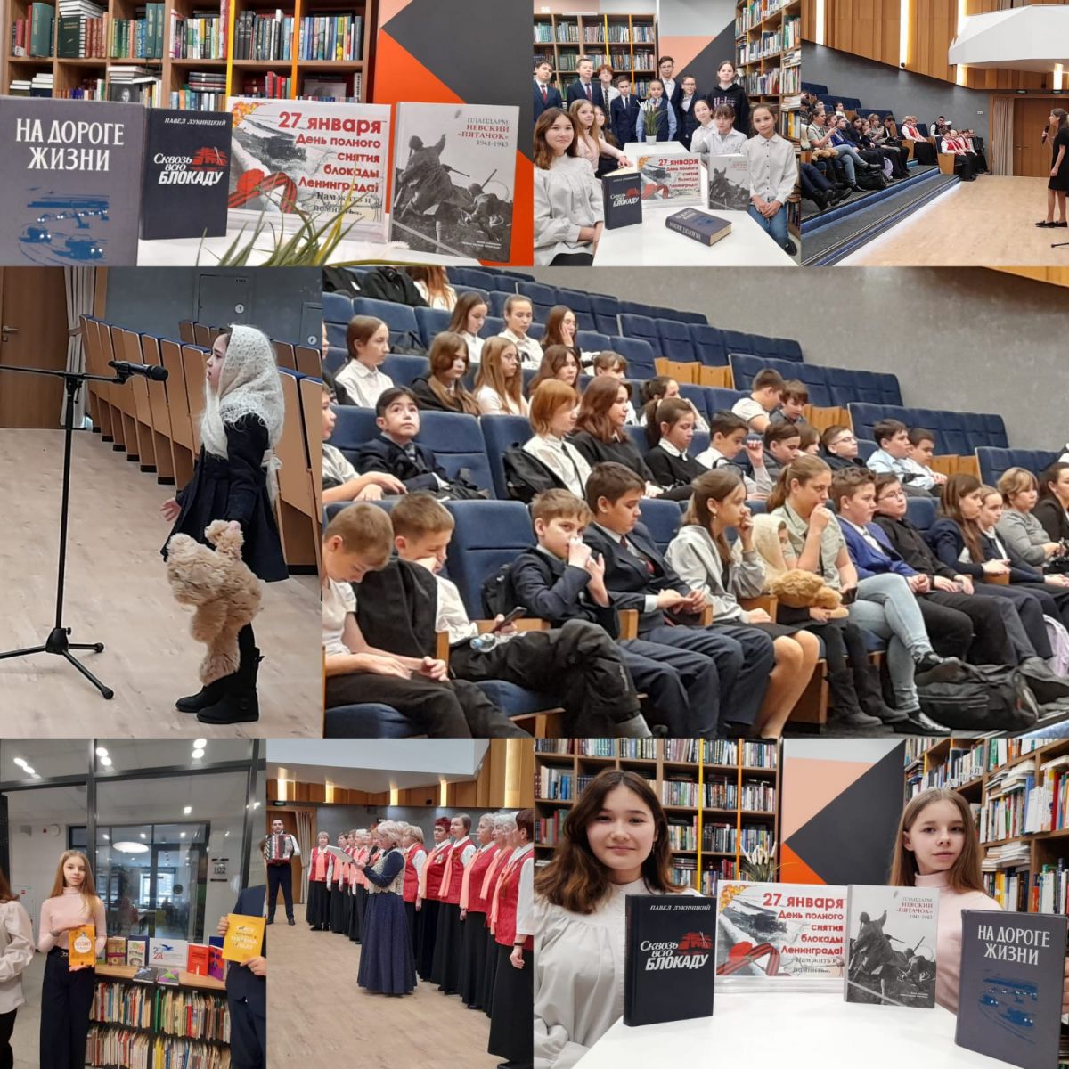 «Непокоренные. 80 лет со дня полного освобождения Ленинграда от фашистской блокады». В библиотеке – филиал №47 вниманию студентов и школьников была представлена книжная выставка «Нам жить и помнить…». Учащиеся познакомились с произведениями А. Чаковского «Блокада», В. Ардаматского «Ленинградская зима», Д. Гранина, О. Берггольц, из которых узнали о героизме и стойкости жителей Ленинграда, о строительстве спасительной «дороги жизни» через Ладожское озеро. Ребята с интересом посмотрели документальный фильм «Надо пережить голод…», наглядно показывающий тяжелую жизнь ленинградцев в те нелегкие для всей страны времена. Прозвучали песни: «Ладога», «Город над вольной Невой». «Ленинград мой, милый брат мой», «Я люблю тебя, жизнь!» в исполнении народного хора «Волжанка». Участники театральной студии «Квартира» читали стихи о Блокадном Ленинграде. Присутствовали учащиеся нашей гимназии, 6 А и 6 Б классов.
