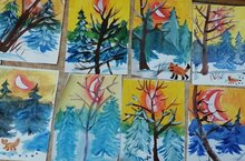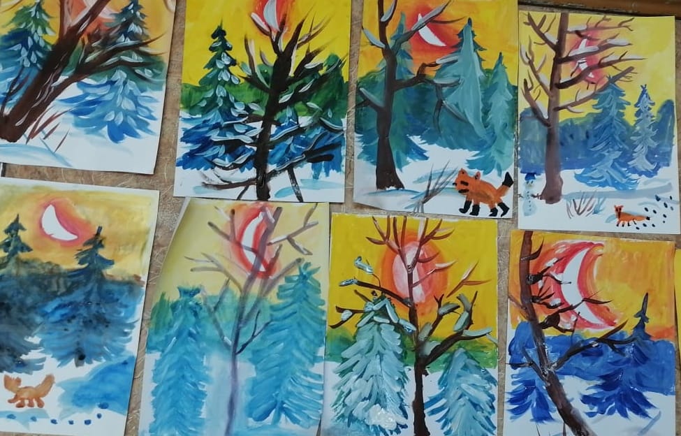 Зима-это сказочное и волшебное время года, особенно в лесу. Вокруг холодно. Зайцы в лесу поменяли шубку. Лисьи следы лежат на белом серебристом снегу. Зимушка идет и покрывает всё вокруг инеем. Зима в лесу как хозяйка. Учащиеся 2 А и Б классов на занятиях art-студии учились передать все это в рисунке.