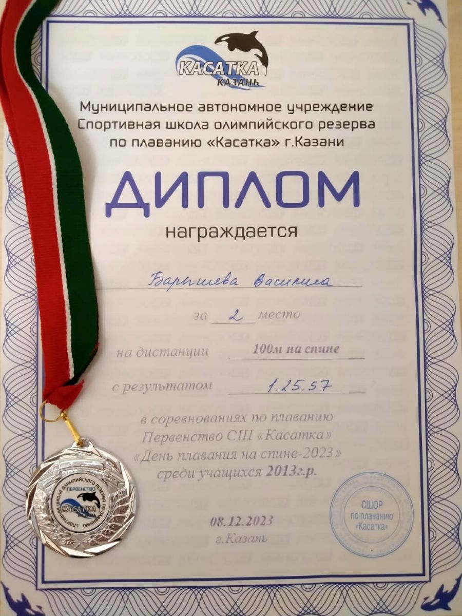 Поздравляем ученицу 4 А класса Барышеву Василису с победой в спортивных соревнованиях по плаванию - Диплом II место! Желаем дальнейших успехов и спортивных побед!