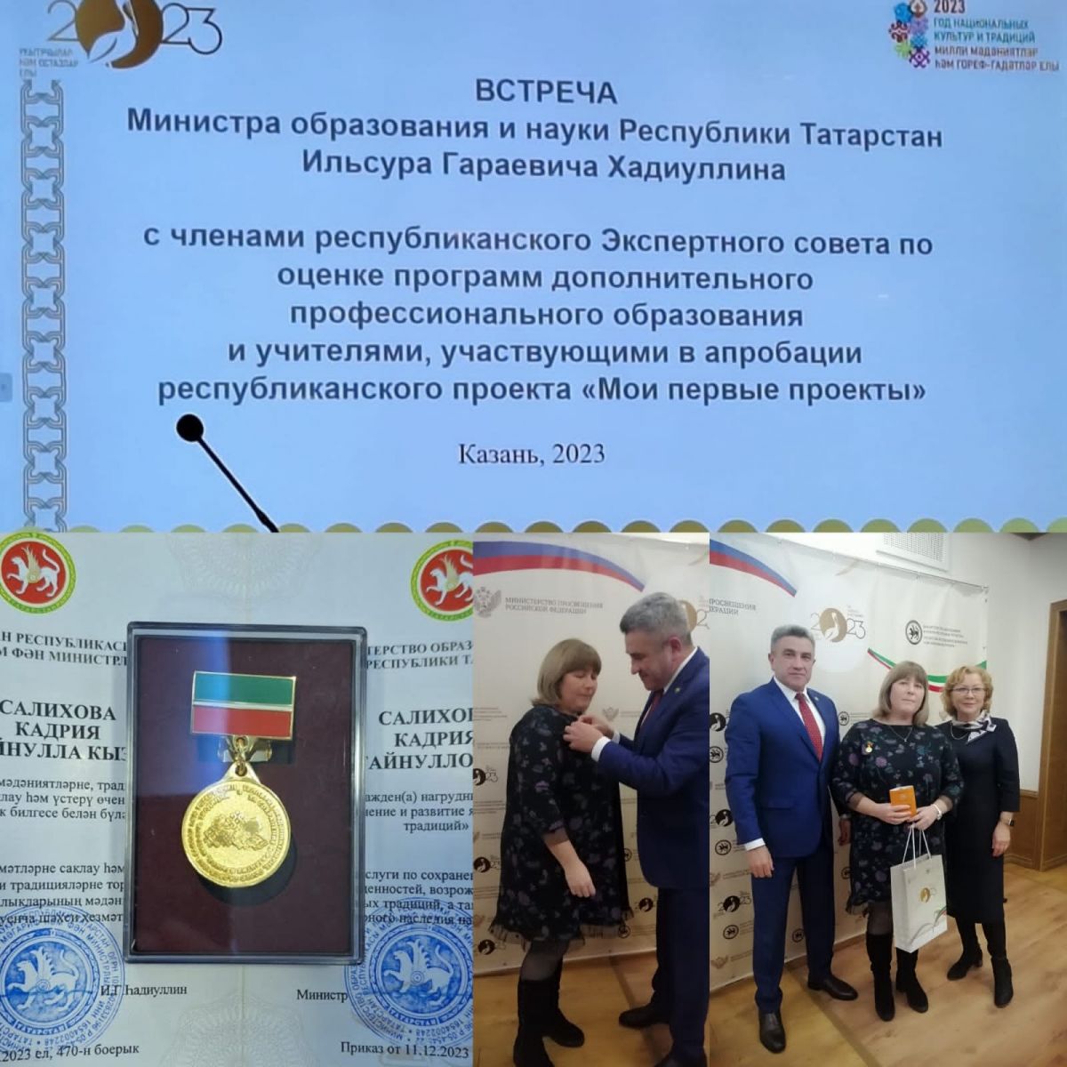 Поздравляем учителя начальных классов Салихову Кадрию Гайнулловну с высокой государственной наградой "Нагрудный знак за сохранение и развитие языков, культур, традиций". Желаем дальнейших успехов, творческих побед и дальнейших лет плодотворной работы.