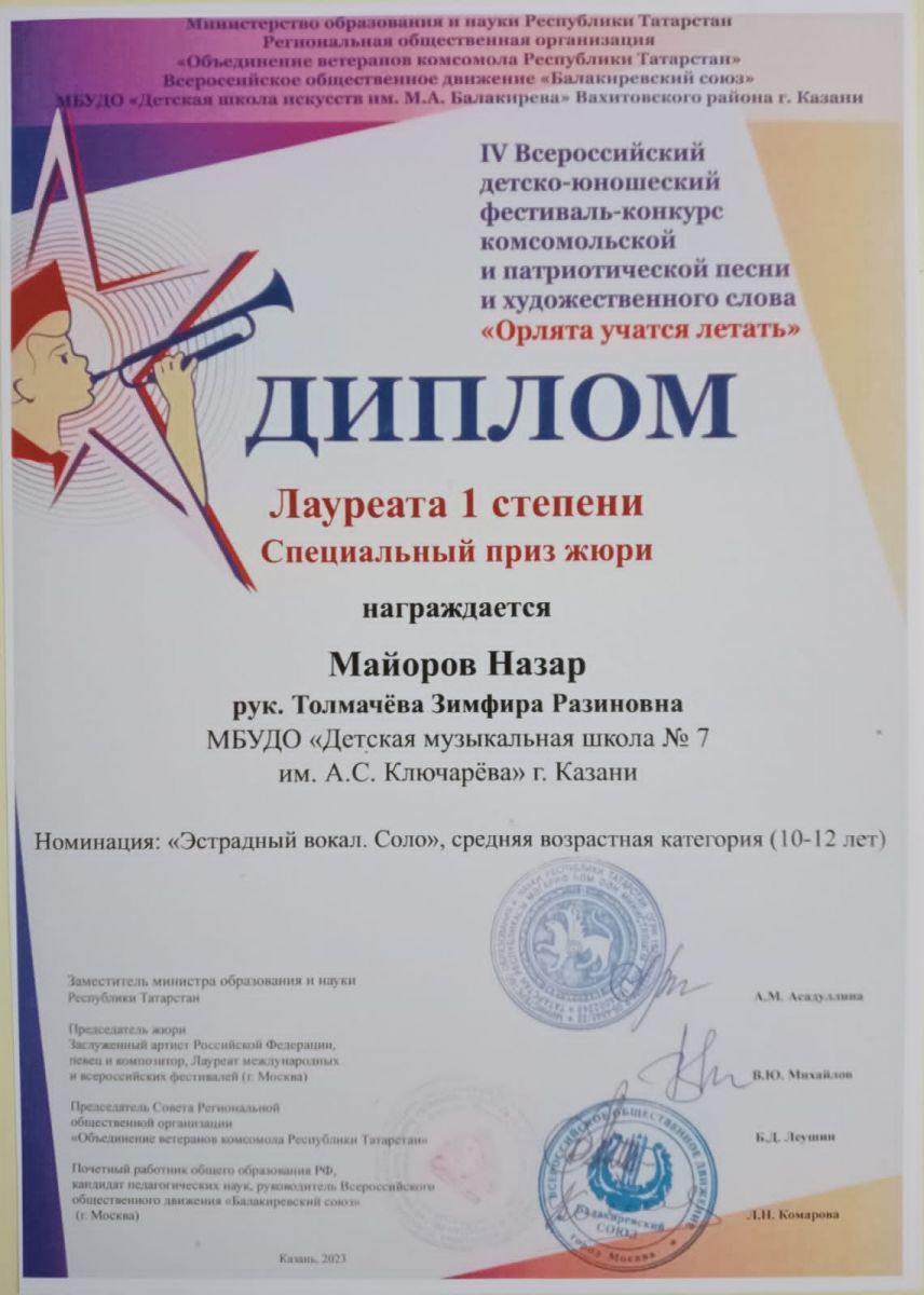 Поздравляем ученика 4 Б класса, Майорова Назара с победой! Диплом лауреата I степени, специальный приз жюри. Благодарим за подготовку педагога