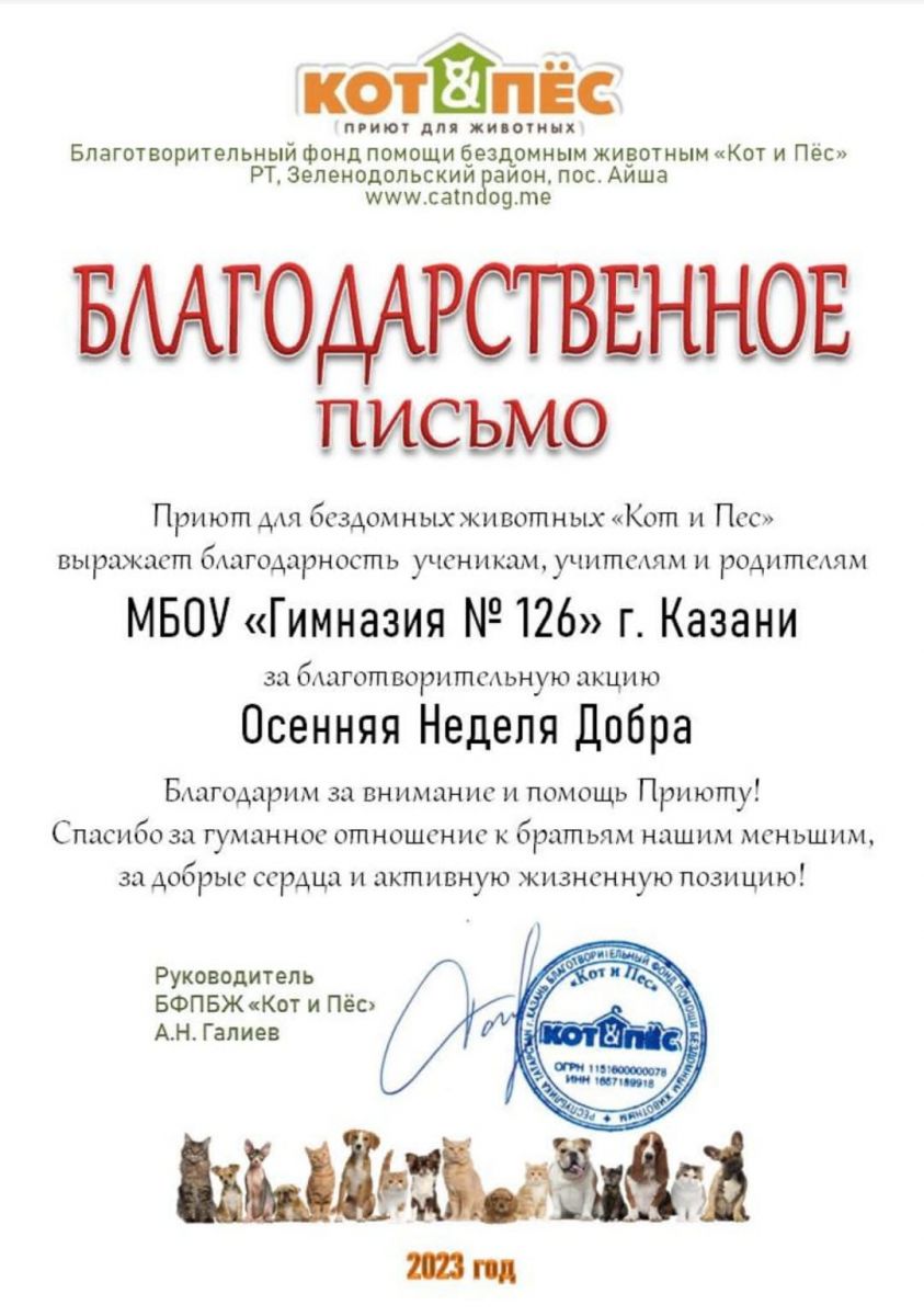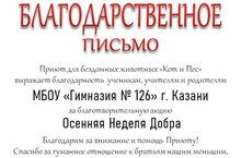 Учащиеся нашей гимназии постоянные волонтёры помощи бездомным животным. Ежегодно в гимназии проходят "недели добра". Большое спасибо всем организаторам и участникам, спешите делать добрые дела.