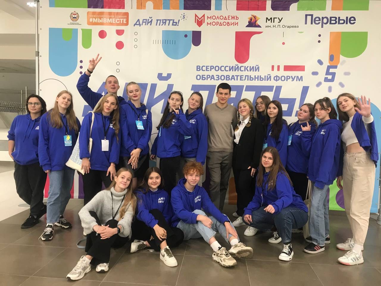С 7 по 10 сентября 2023 года в Саранске прошёл Всероссийский образовательный форум "Дай пять!". Среди 200 представителей молодёжи в возрасте от 14 до 25 лет из 75 регионов Российской Федерации единственным представителем Татарстана была ученица 10А класса нашей гимназии Саттарова Ева. Целью форума был обмен опытом в сфере образования и волонтёрских центров. Делегаты форума участвовали в мастер - классах, создавали собственные проекты, встречались с ректором МГУ имени Н.П.Огарева Дмитрием Евгеньевичем Глушко и т.д. Дни форума прошли очень насыщенно и продуктивно.