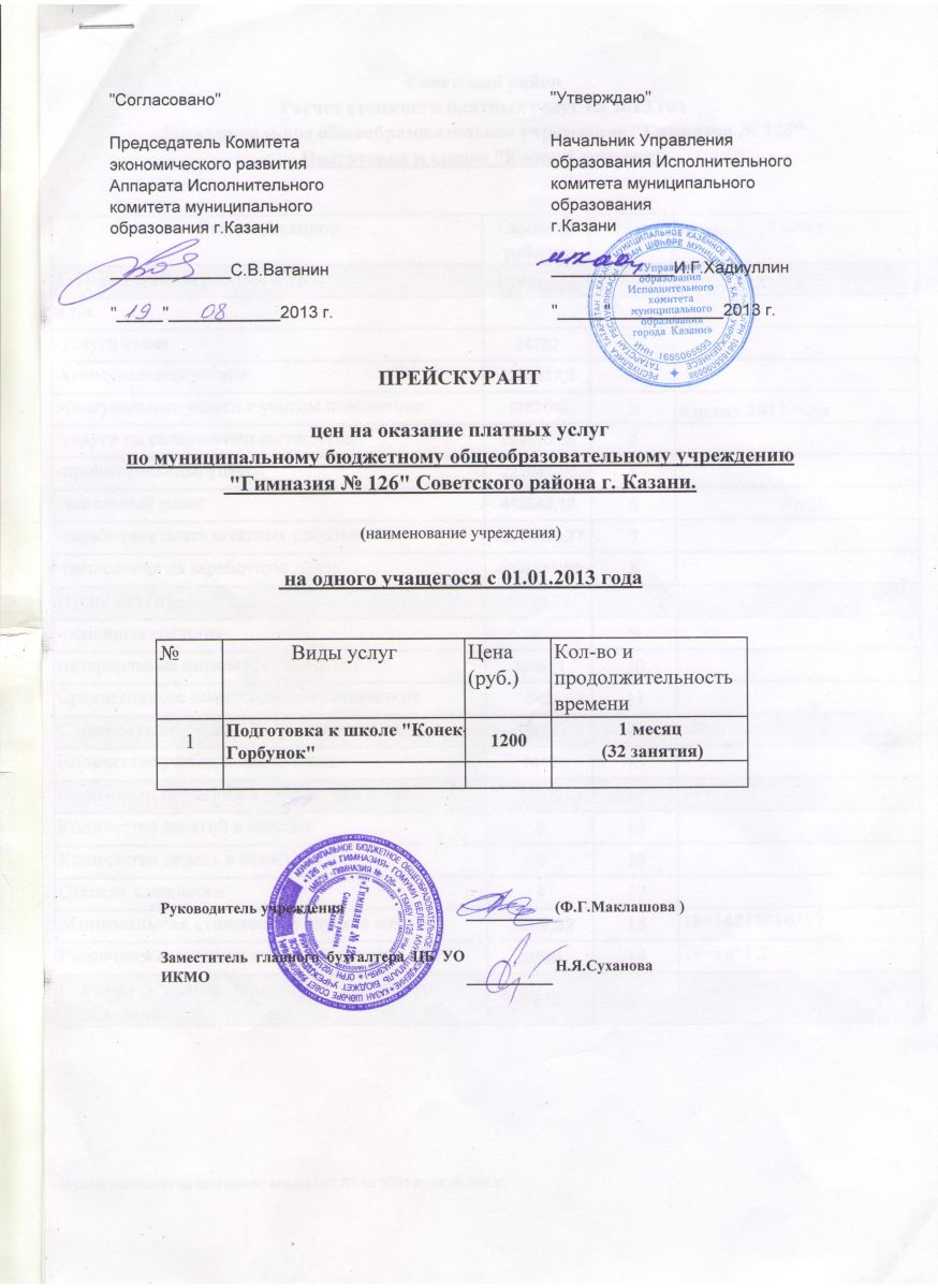 прейскурант цен на оказание платных услуг (предшкола)