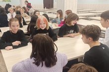 Ученики 6 "Б" класса приняли участие во втором туре городского интеллектуального турнира "Что? Где? Когда?" Ребята достойно отыграли свою игру, заняв 13 место из 47 команд!