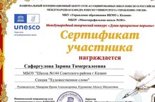 Поздравляем Зарину с участием на Международном творческом конкурсе "Души прекрасные порывы".