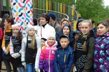 На празднике двора. 7 мая на празднике двора, в честь Дня Победы ученики и учителя нашей школы организовали для жителей микрорайона занимательные мастер-классы, игры в шахматы и др. С Днём Победы!