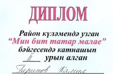 Поздравляем участника районного конкурса "Мин бит татар малае", ученика 5 класса Гарипова Камиля, с призовым вторым местом и руководителей Залялиеву Лейсан Равилевну, Курманову Айсылу Шаукатовну. Молодцы! Спасибо и группе поддержки, ученикам 3, 9 классов.