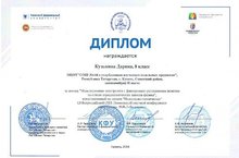 Ученица 8 класса Кузьмина Дарина стала призером V Республиканской научно-практической конференции с международным участием "На крыле науки"