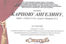 18 апреля в Детской академии прошел конкурс театрального мастерства "СТИХиЯ". Ученицы 6б класса Карпова Ангелина и Большакова Анастасия (рук. Макарова И.А.) участвовали в номинации "Художественное слово". Нужно было рассказать стих и прозу по 3 минуты каждый. Девочки награждены дипломами участия. Поздравляем!