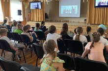 Сегодня прошел 13 день лагерной смены. К участникам смены с утра приехал виртуальный океанариум и прошла кружковая работа,после обеда прошел просмотр патриотического фильма.