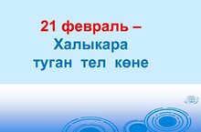 21 нче февральдә Халыкара туган тел көне билгеләп үтелә. Халыкара туган тел көне - Туган телнең чын матурлыгы, аның тирәнлеге һәм эчке көче турында уйланырга менә дигән форсат. Безнең мәктәптә Халыкара туган тел көненә багышланган чаралар узды: «Татарстан – безнең уртак йортыбыз» ачык дәресе, «Без - туган тел дуслары» уен – викторинасы, «Безнең кыйммәтле бүләгебез– сүз» сыйныф сәгатьләре, күргәзмәләр һәм конкурслар.