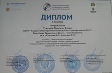 Состоялась Всероссийская научная конференция им. Н. И. Лобачевского. На ней в секции "Охрана здоровья человека" представил свою работу Туктаров Марсель, ученик 4 класса. По итогам данной конференции Марселю удалось завоевать диплом I степени. Поздравляем также его научных руководителей Кургееву Ф. Р. и Алексееву З. С.