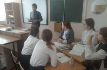 В 8А классе прошла игра по физике. Ученики были поделены на несколько команд, каждая из которых придумала название и девиз. Ребята отвечали на вопросы, направленные на проверку их знаний. Игра прошла в рамках школьного проекта "Хочу все знать". Организатор - Мугинов М. Р.