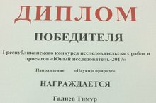 Поздравляем победителей и призеров I Республиканского конкурса исследовательских работ и проектов "Юный исследователь - 2017":