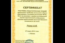 27 марта 2013 года в Казанском педагогическом колледже состоялись "Педагогические чтения - 2013", которые посетили педагоги школы Гожа А.К., Бырылова С.П. и Кораблева О.С.