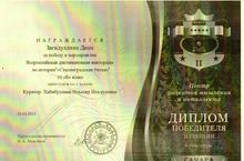 Поздравляем Загидуллину Данию, ученицу 10 А класса, занявшую 3 местов Конкурсе работ по истории и культуре родного края, татарского народа и РТ, проводимого под эгидой МОиН РТ, Казанского (Приволжского) федерального университета и редакцией журнала "Чын мирас".