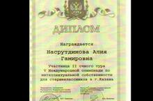 Ученица 10 А класса Насрутдинова Алия стала участницей II очного этапа V Международной олимпиады по интеллектуальной собственности для старшеклассников в г. Казани.