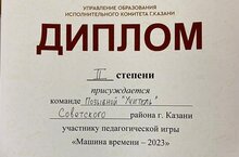 Сегодня на базе гимназии № 27 прошла городская игра учителей истории "Машина времени". Советский район представляла команда "Позывной Учитель", в состав которой входила учитель истории нашей школы Ганеева А.Ф. Участники игры продемонстрировали знание исторических фактов, событий, а также их причин и последствий. По итогам мероприятия команда заняла II место. Поздравляем и желаем не останавливаться на достигнутых успехах!