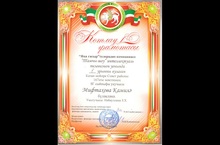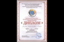 Дипломом Лауреата II степени Международного фестиваля традиционной культуры тюркского мира «Урмай-зэлидэ» награждается Габдрахманова Лейсан в номинации «Национальное сольное вокальное исполнительставо».