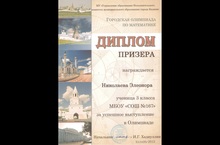 Дипломом Призера в Городской олимпиаде по математике награждается Николаева Элеонора, ученица 3 класса школы № 167.