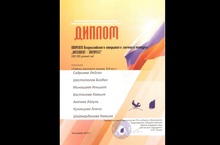 Дипломом МО и НРТ награждается Тимергалиева Лилия, ученица 10 класса школы 167, занявшая 2 место в Республиканской научно-исследовательской конференции школьников, посвященной памяти татарского ученого-просветителя Ибрагима Хальфина.